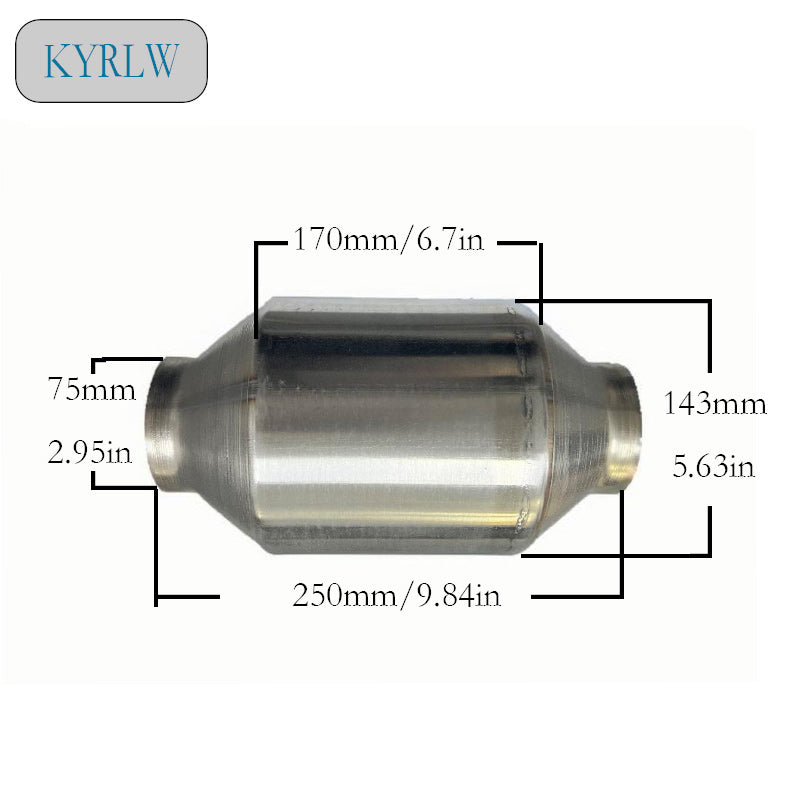 Constructed from premium metal, these catalytic converters are built to withstand the rigors of daily driving. The precision-engineered 2.95-inch inlet and exhaust caliber ensure a perfect fit for a wide range of vehicles, while the overall length of 250mm and body diameter of 143mm offer ample space for installation. The durable metal construction guarantees longevity, backed by a 24-month warranty, ensuring your investment is protected.